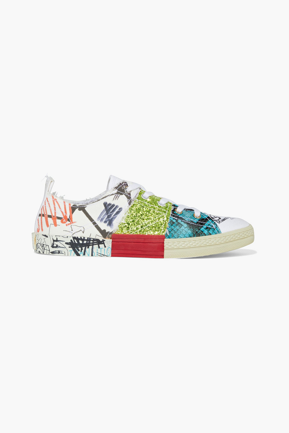 Woman Embellished Printed Canvas And Faux Snake-effect Leather Sneakers Multicolor