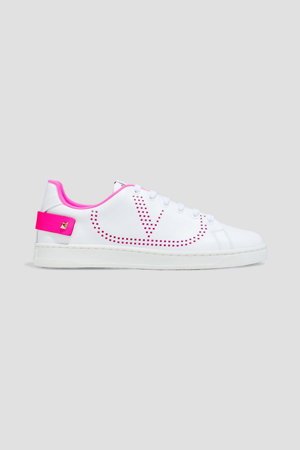 Woman Neon-trimmed Perforated Leather Sneakers White